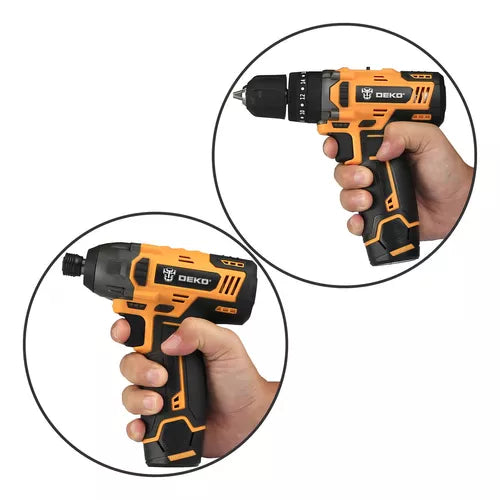 - Descrição: Parafusadeira Furadeira 3/8" Polegadas 10mm 12V + Parafusadeira Impacto 1/4" Polegadas 12V Bivolt Carregador Maleta Acessórios - Deko