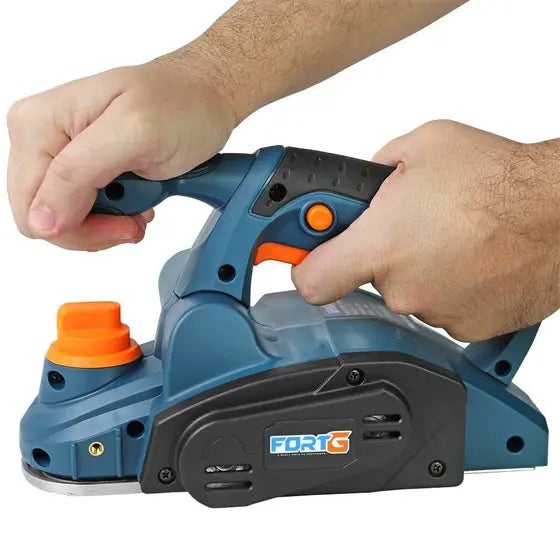 Plaina Elétrica 82mm 720WQuem trabalha com madeira sabe que é preciso ser caprichoso e um bom acabamento em uma peça é tudo. Por isso desenvolvemos a Plaina Elétrica 82mm 220V FG2560 para você. Essa máquina é ideal para acertar as irregularidades, nivelar e determinar a espessura de uma peça, deixando-a bem acabada. Com excelente precisão de corte (2 lâminas de eixo) pois possui botão de uso contínuo e empunhadura dupla, executa rebaixamentos em madeira e quebras de canto vivo com perfeição. Por se tratar de um trabalho pesado ela foi fabricada em material leve e resistente, com base frontal em alumínio e traseira em ferro. Possui também saída de resíduos, garantindo que os resíduos produzidos por seu uso não atinjam o usuário e/ou possam ser coletados de forma adequada.